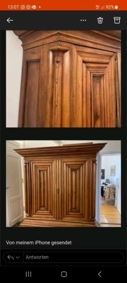 Wir bieten unseren schönen Frankfurter Wellenschrank zu Verkauf an. Nur an Selbstabholer. Beim Raustragen kann geholfen werden.