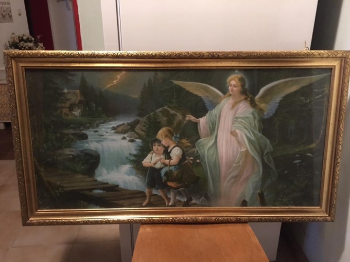 Ich biete ein großes Schutzengel Heiligenbild an. Größe 109cm x 60 cm. Preis 50€. Nur Abholung.