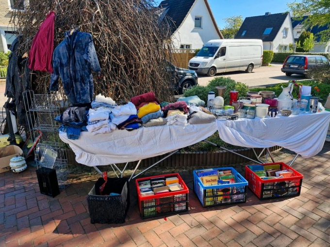 Hallo, am 26.04 ist von 10 bis 15 Uhr Straßenflohmarkt in der Mommsenstraße in Elmshorn. Dabei mache ich mit und habe an meinem Stand: Kleidung, Bücher, DVD Regale, Übertöpfe, Kleinigkeiten, Küchengeräte, Schutzweste zum Reiten und Dekoartikel. Außerdrm verkaufe ich ein Liegefahrrad von TW- Bents, was gerne Probe gefahren werden kann. Kommt gerne vorbei und schaut euch um.