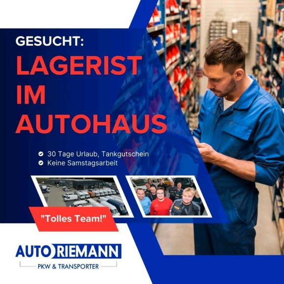 Wir sind ein Familienunternehmen in der 3. Generation. Zur Verstärkung unseres Teams suchen wir zum nächstmöglichen Zeitpunkt einen Lageristen (m/w/d) im Kfz-Gewerbe für unser Autohaus.