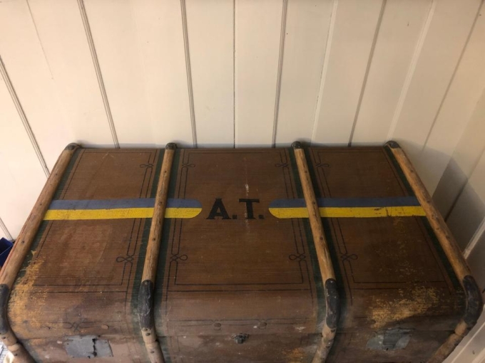 großer, antiker Reisekoffer, min. 100 Jahre alt, mit Gebrauchsspuren, jedoch guter Zustand und funktionstüchtig. Von "dem Kofferhersteller":
