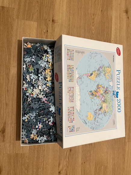 Das Puzzle ist vollständig und hat 2000 Teile. Es wurde bisher noch nicht aufgebaut.