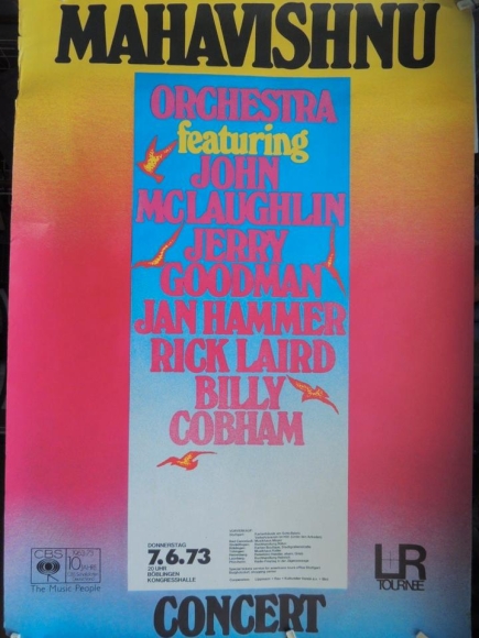 Original-Plakat zum Konzert des Mahavishnu Orchestra am 7. Juni 1973 in der Kongresshalle in Böblingen in der legendären Besetzung mit John McLaughlin, Jerry Goodman, Jan Hammer, Rick Laird und Billy Cobham.