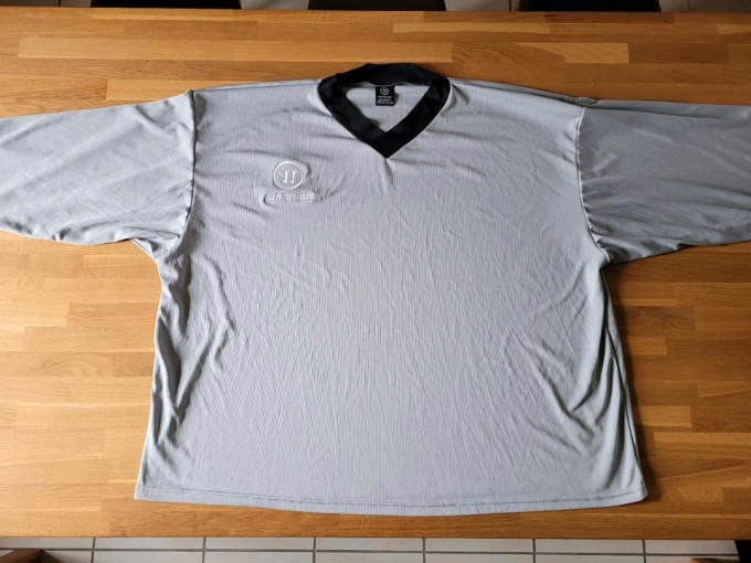 Biete mein graues Warrior Trainingstrikot, im Goalie-Schnitt/Goalie-Cut Größe XXL, an.