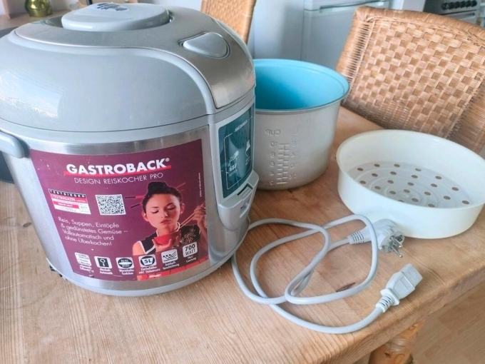 Ich biete einen Reiskocher mit ein großen Volumen für eine (z. B. Großfamilie). Ich und meine Freundin haben den Kocher seit 7 Jahren verwendet.