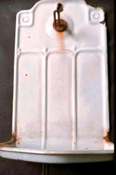 Seifen/Bürsten Schale 27x18cm evtl auch für spültuch etc ? Weiss Metall/Eisen? hier und da Rost müsste aus den 40er Jahren sein oder früher?