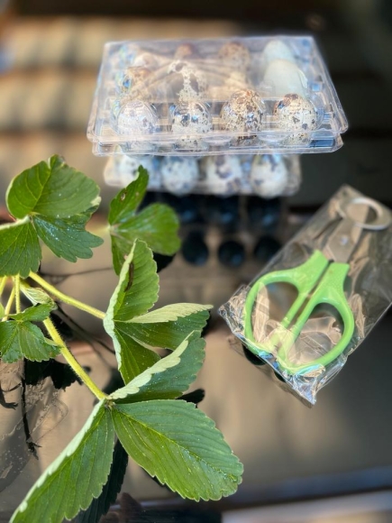 2 Packungen Wachteleier je 12 + Schere neu + Erdbeeren