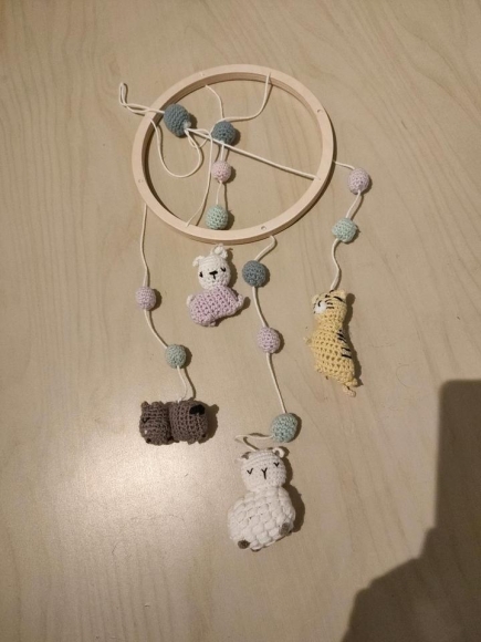 Mobile Baby Tiere Holz gehäkelt