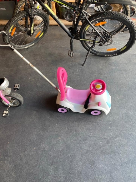 Gebrauchtes Rutschauto für Mädchen, man kann es schieben oder auch die Stange abnehmen Rausfallschutz und Fußstützen für Kleinkinder wären auch dabei, nur nicht auf den Bildern zu sehen.