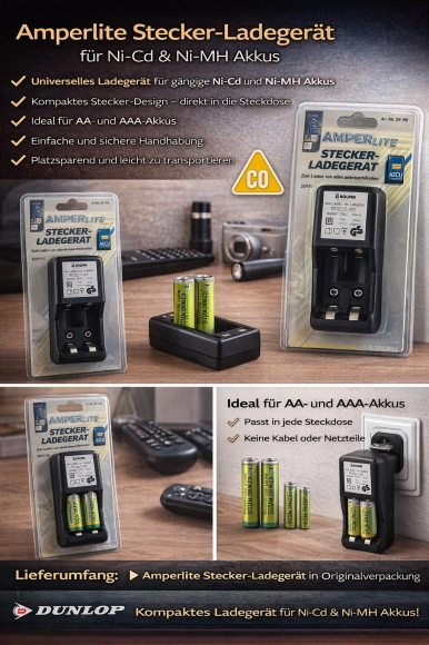 AMPERLITE Stecker-Ladegerät für Ni-CD / Ni-MH Akkus – Universal