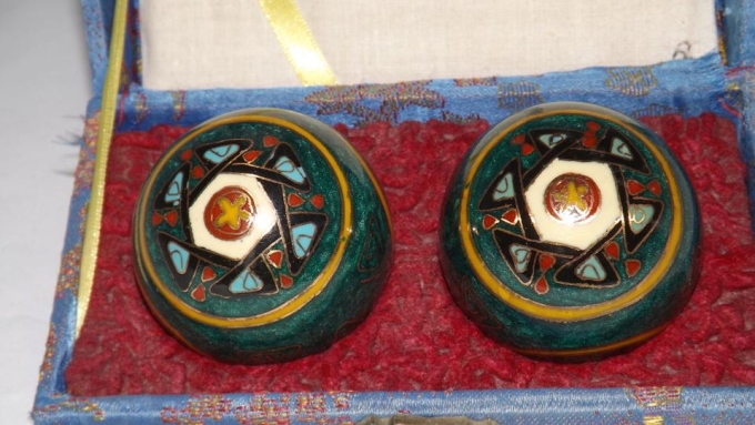 2 Qi-Gong Kugeln in schöner blauer Schatulle.