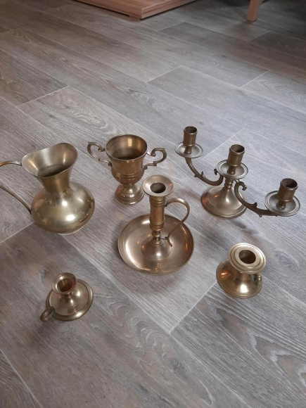 Verkaufe Messing Kerzenständer und Krug, abzugeben wegen Haushaltsauflösung.