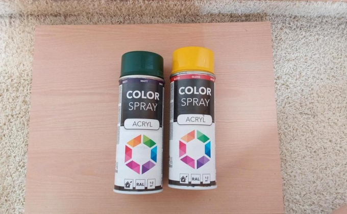 Acrylfarben Spraydosen rapsgelb und moosgrün
