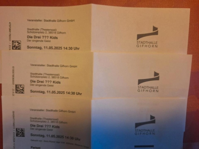 11.5.25, Die drei ??? Kids, Stadthalle Gifhorn, 3 Karten