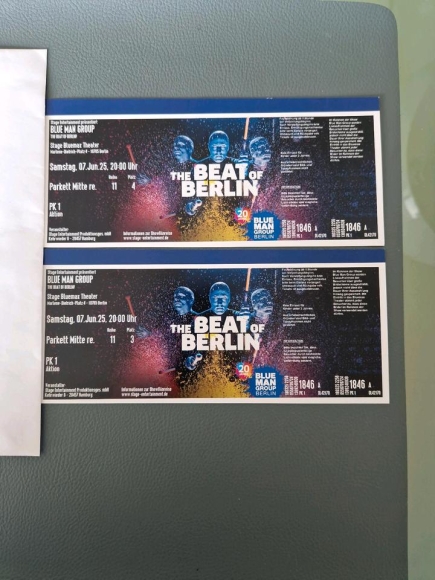 Biete hier 2 Tickets für die Blue Man Group Berlin am Samstag 07.06.25 um 20 Uhr.