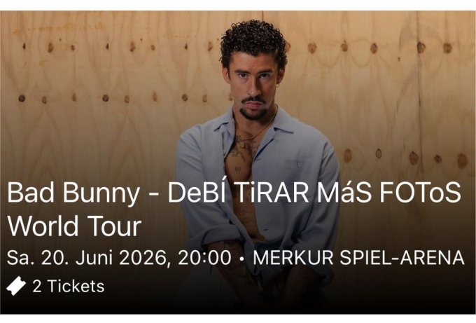 Hey, ich verkaufe 2 Sitzplätze für Bad Bunny am 20.06.2025 in Düsseldorf.