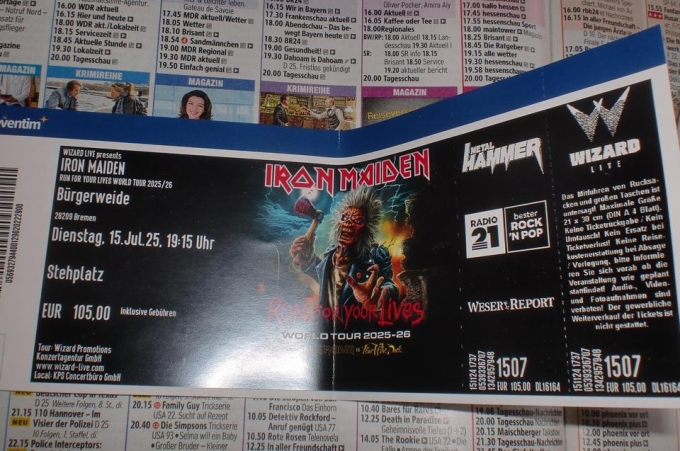 IRON MAIDEN Ticket 15. JUli Bürgerweide Bremen