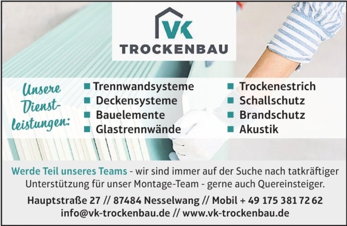 Wir stellen ein: Spachtler (m/w/d) im Trockenbau