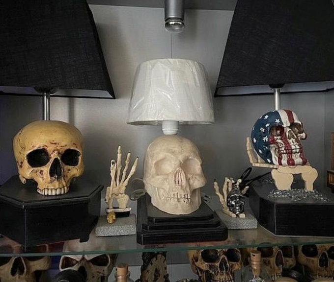 Totenkopf und Skelett Lampen her. Jede Lampe gibt es nur 1 x und ist jeweils ein Unikat.
