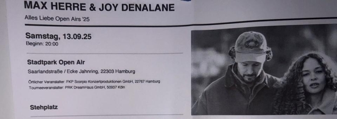 2 Karten für das Konzert von Max Herre & Joy Denalane am 13.09.2025 im Stadtpark Hamburg.