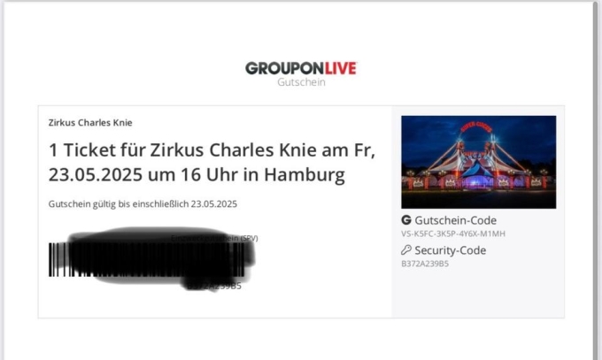 Gekauft auf Groupon, Versand per Mail