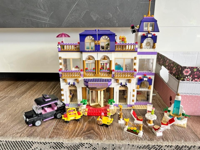 Ich verkaufe mein Lego Friends Hotel (41101). Alle Teile, bis auf ein Schlüssel, sind vorhanden und alles im guten Zustand