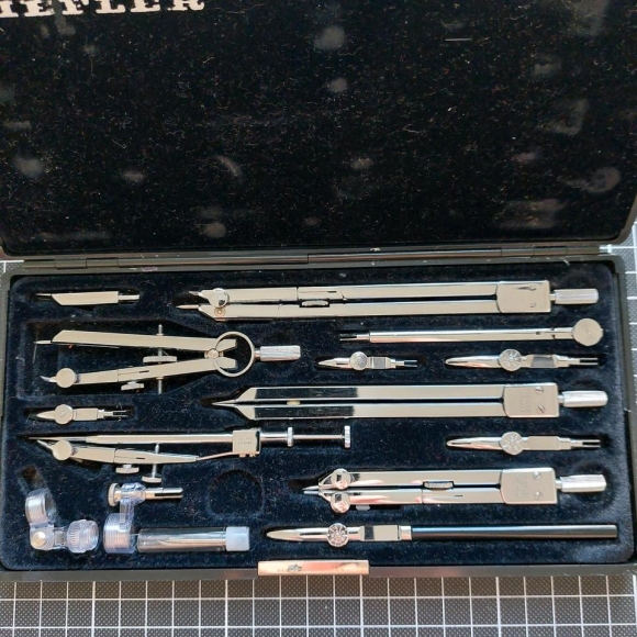 Hier biete ich meinen Zirkelkasten von Riefler mit Tuschezubehör an.