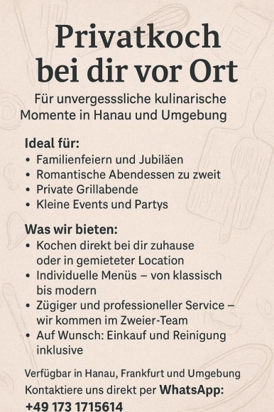 Privatkoch bei Ihnen vor Ort – Für unvergessliche kulinarische Momente in Hanau & Umgebung