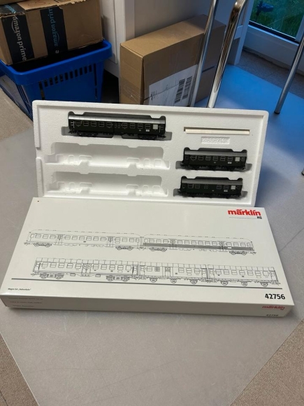 Hallo, biete hier ein Wagenset ( Märklin 42756 ) der Firma Märklin an. Das Set befindet sich in einem guten gebrauchten Zustand.