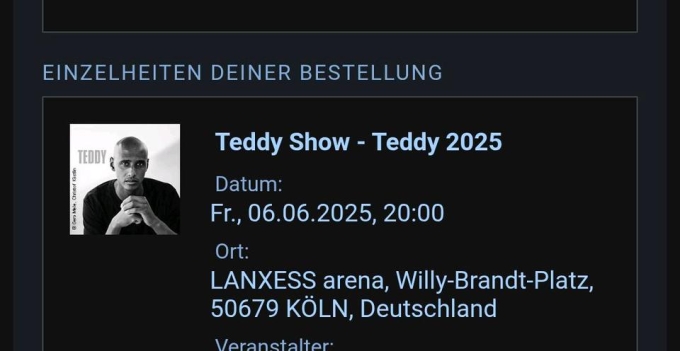 Teddy Show 06.06.25 in Köln 2 Tickets