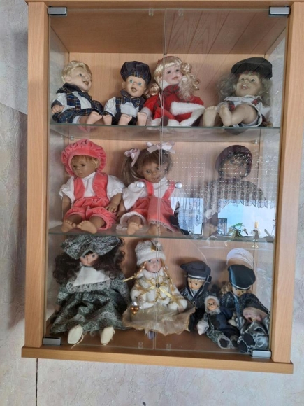 Puppen saßen nur in der Vitrine.Sind nicht bespielt.