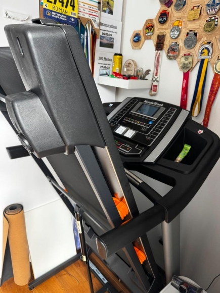Ich biete das abgebildete Laufband. Es ist einklappbar. Anbei die Beschreibung des Herstellers:
