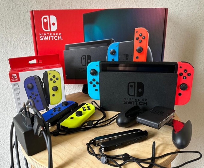 Zum Verkauf steht meine sehr gut erhaltene Nintendo Switch (Standardmodell) in der beliebten Neon-Rot/Blau-Ausführung mit Originalverpackung – inklusive einem zweiten Joy-Con-Set (Blau/Neon-Gelb) auch in Originalverpackung. Netzkabel und HDMI Kabel sind ebenfalls vorhanden und funktionieren!