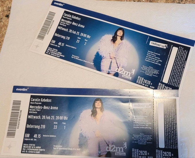 Wir müssen leider unsere Karten 2Stück zusammenhängende Plätze für den 19.06.25 in Mercedes Benz Arena abgeben, da das Konzert vom 26.2.25 auf den 19.06.25 verlegt wurde.