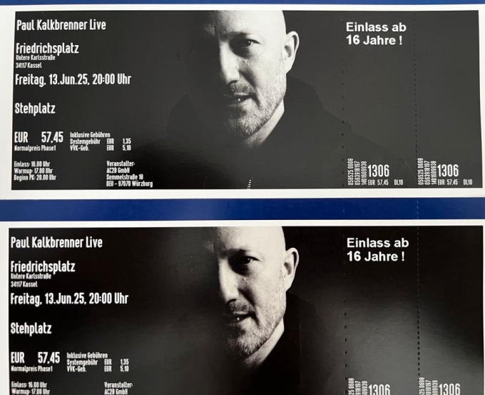 Verkaufe 2 Karten für Paul Kalkbrenner in Kassel (Friedrichsplatz). Versand per Einschreiben oder per Abholung.
