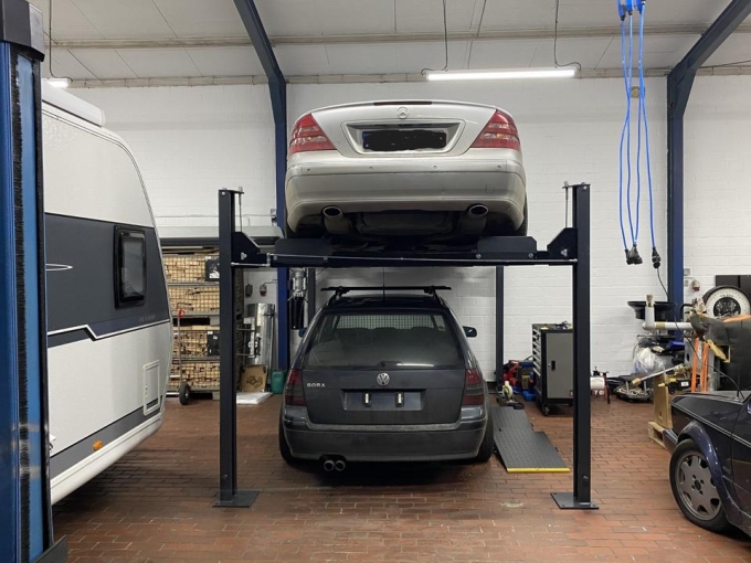 Ich biete zwei übereinanderliegende Stellplätze für Autos im Doppelparker (Oldtimer/ Youngtimer - Liebhaber) in renovierter Kalt-Halle.