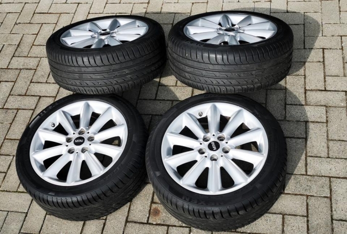 17 Zoll MINI Clubman original Alufelgen mit Sommerreifen und original Mini RDC Reifendrucksensoren. Der Radsatz ist wenig gebraucht und wurde gerade bei BMW (Mini) frisch ausgewuchtet. Der Radsatz passt auf den Clubman Typ: F54, aktuelle Baureihe, 2015 bis 2024 - hierbei passend bei allen Motoren, die 17 Zoll fahren dürfen.