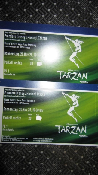 2 MEGA Tickets Karten Premiere Musical Tarzan Hamburg 20.11. PK 1