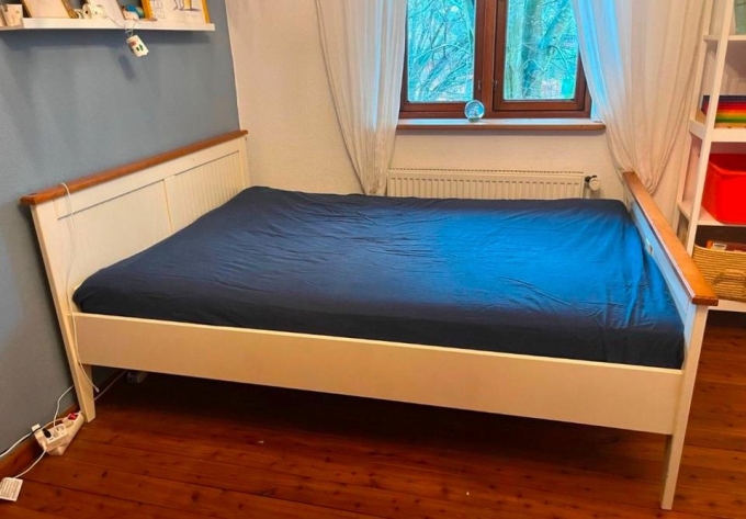 Das Bett ist in gutem Zustand und ohne Matratze. NP war 350 Euro.
