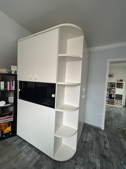 Aufgrund der vielen Bauteile wäre es sinnvoll den Schrank bei uns selbst zu zerlegen, damit der Aufbau im Nachgang einfacher ist. Bei dem Abbau helfe ich auch gerne mit.