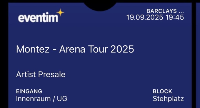 Verkaufe 2 Konzertkarten für die Montez-Arena Tour 2025, am 19.09.2025 um 19:45, in Hamburg.