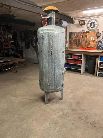 Zum Verkauf steht hier 300L Wasserspeicher der zum Räucherofen umgebaut wurde .