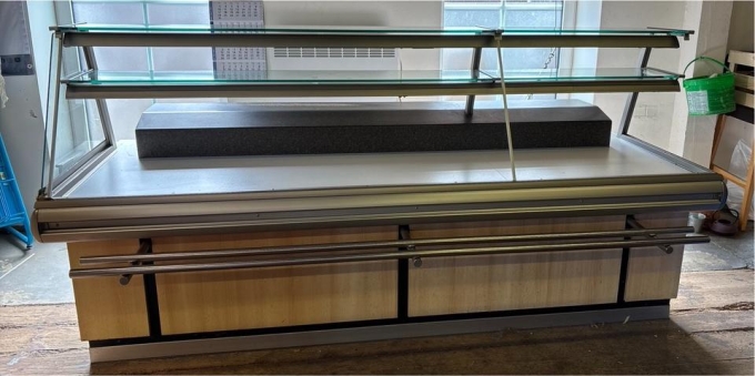Verkaufe einen gebrauchten Präsentationstresen mit Beleuchtung. Alle Steckdosen funktionieren. Der Tresen hat auf der Rückseite jede Menge Fächer und Schubladen- viel Stauraum.