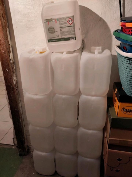 mittlerweile haben sich 13 leere Kanister von Spinnrad-Waschmitteln angesammelt. Zusammen kosten sie 10€, einzeln 1€.