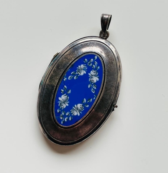 Jugendstil - Medaillon - blau - Emaille - Alpacca- Anhänger