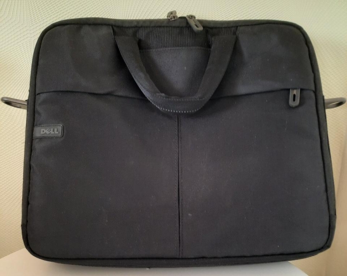 Biete hier eine neue, nie benutzte Laptoptasche in der Farbe Schwarz an.Die Tasche ist 39 x 31 x 8 cm, hat vorn und hinten eine verdeckte Tasche mit Reißverschluß. Der Tragegriff ist verstärkt. Im Inneren sind mehrere Fächer und der Teil für den Laptop ist gepolstert und mit einem Klettverschluß versehen. Auf der Vorderseite der Tasche steht DELL. Die Tasche hat einen Tragegurt, der allerdings in der Farbe Dunkelblau ist. Wir sind ein Rauch- und tierfreier Haushalt.