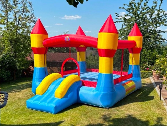 Die Hüpfburg ist für innen und außen geeignet und ist schnell aufgebaut und wieder eingepackt.