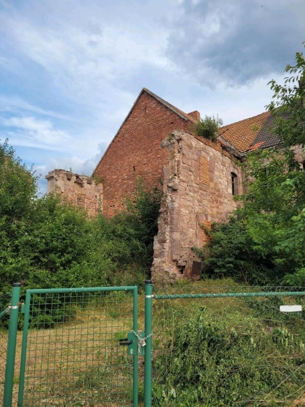Denkmalgeschützte Ruine eines im Kern spätmittelalterlichen wohnturmartigen Gebäudes (ca 23x10m) ursprünglich dreigeschossig ausgeführt, ähnelt es mit den noch im Innern erkennbaren abgerundeten Ecken an das Hohe Haus auf Schloss Beichlingen; es wird daher, bisher unbelegt, ein herrschaftlichen Zusammenhang vermutet. Überbaut, und weitgehend integriert, ist die Ruine des als Schloss Ichstedt bezeichneten Gebäudes mit einem stark renovierungsbedürftigen kleinen, zweistöckigen Gutshaus aus dem Jahre 1704 (ca 55x16,3m). Sockel aus rotem Kyffhäusersandstein. Wasser, Abwasser und Strom liegen an, sind jedoch nicht angeschlossen. Die baulichen Teile sind eingezäunt. Das arrondierte Grundstück umfasst auch ca 400m2 fruchtbaren Ackerboden. Ein spannendes Projekt mit einer historisch einzigartigen Immobilie. Bei ernsthaftem Interesse erläutere ich Näheres gern telefonisch.