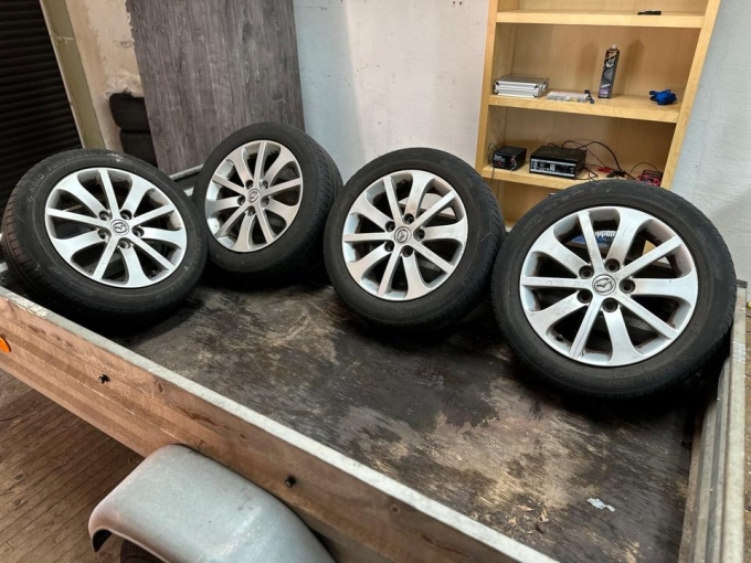 Verkaufe einen Satz Sommerreifen mit Alufelgen für Mazda Felgen haben Par Kratzer Man kann auf letzte Bild sehen