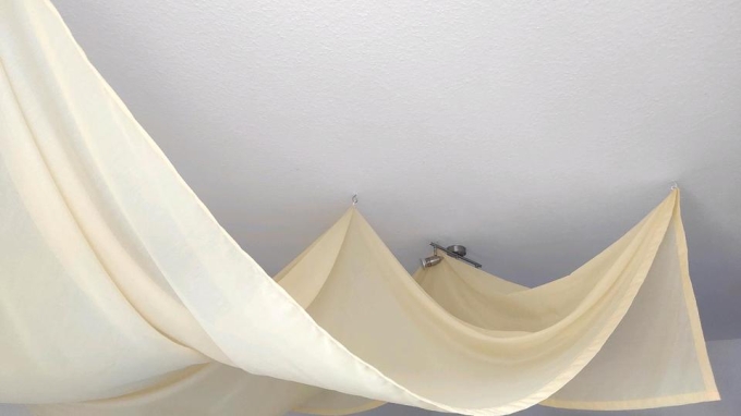 Schöner leuchtend gelber Himmel mit einem passenden Schal für's Fenster.